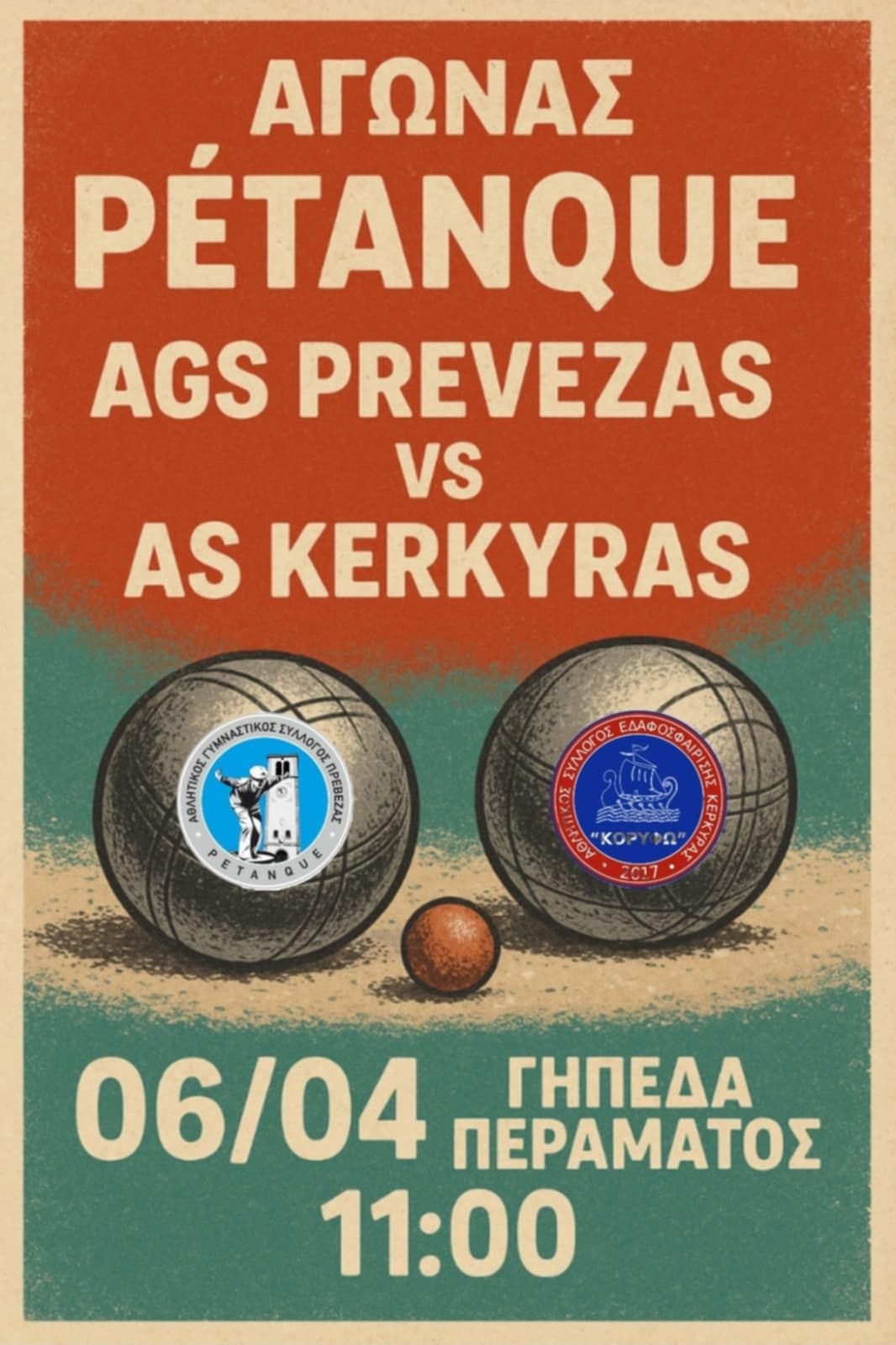Ο Σύλλογος μας Α.Γ.Σ.Π. Petanque Club Preveza, έχοντας φτάσει στο απόλυτο των διεκδικήσεων έως τώρα, περνάει στην επόμενη φάση με την Νοκ Άουτ αναμέτρηση, με το σύλλογο της Κέρκυρας. Ο αγώνας θα διεξαχθεί στην ουδέτερη έδρα των Ιωαννίνων, υπό την αιγίδα της επιτροπής αγώνων της ΕΟΕΔ.